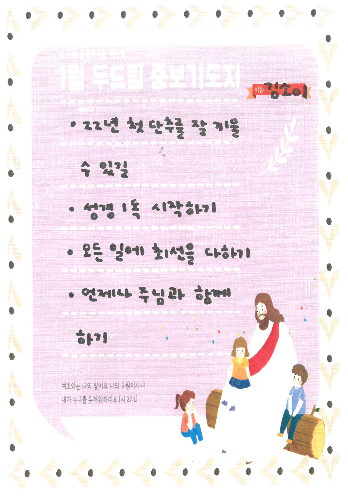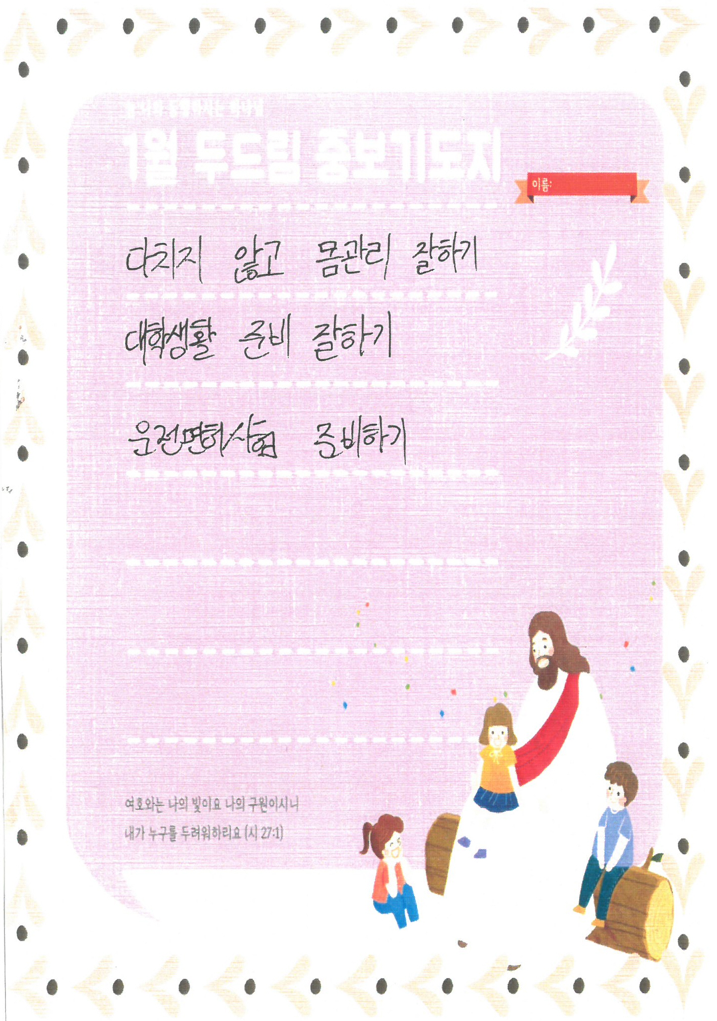 | 다음글 | 해외유학생 소식(윤은주 청년) | 운영자 | 2022.01.09 | 1 | 309 |
