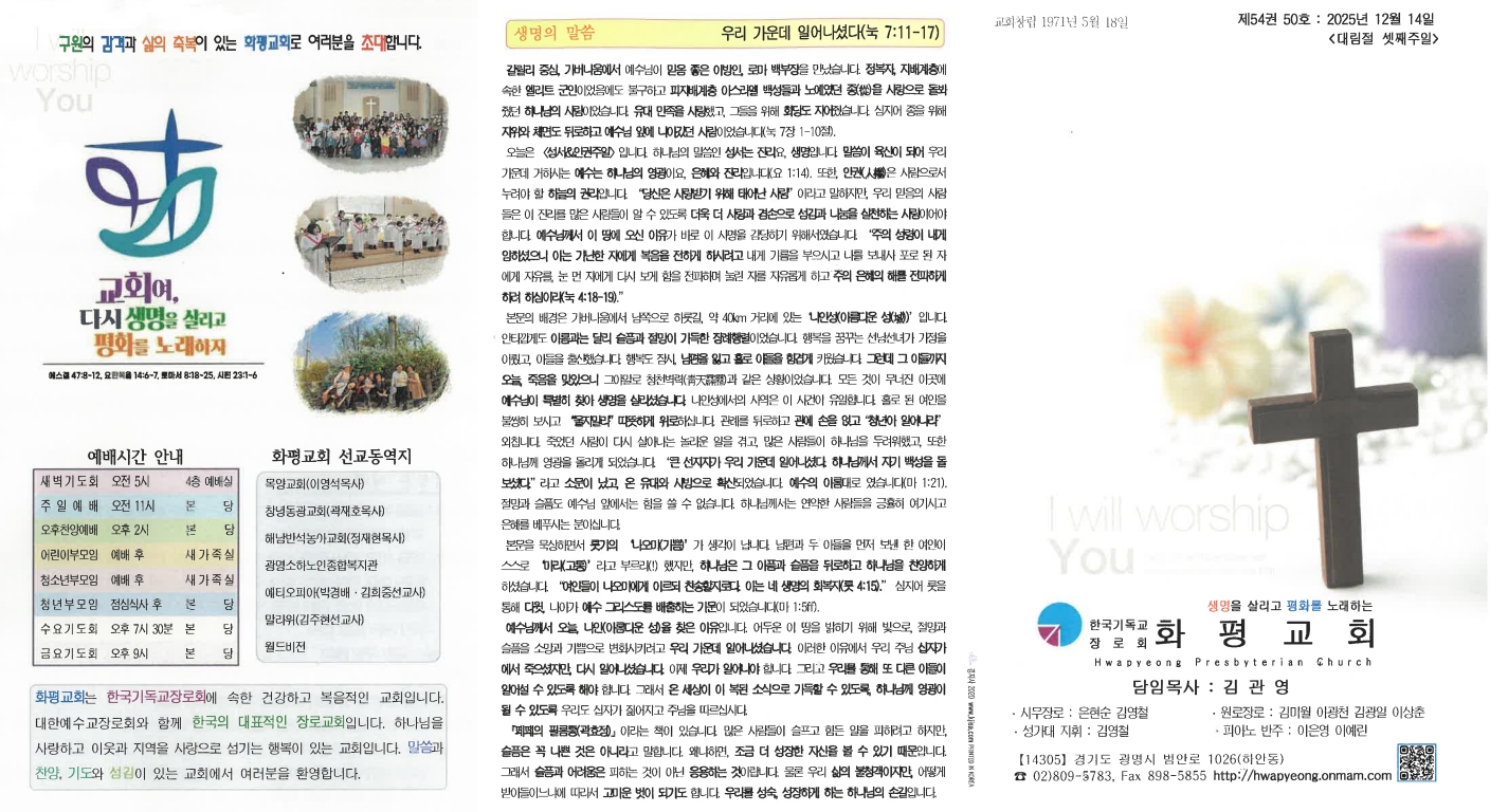 | 다음글 | 20251207 대림절 둘째주일 | 운영자 | 2025.12.06 | 0 | 33 |