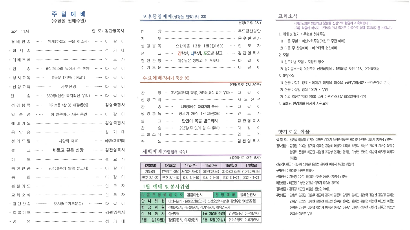| 다음글 | 2026년 1월 4일(새해주일) | 운영자 | 2026.01.03 | 0 | 29 |