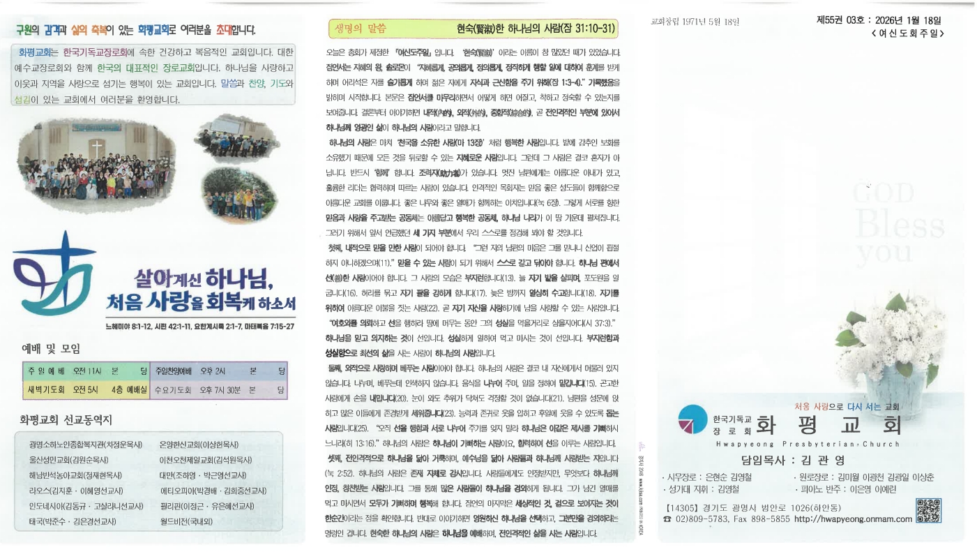 | 이전글 | 20260125 주현절 셋째주일 | 운영자 | 2026.01.24 | 0 | 20 |